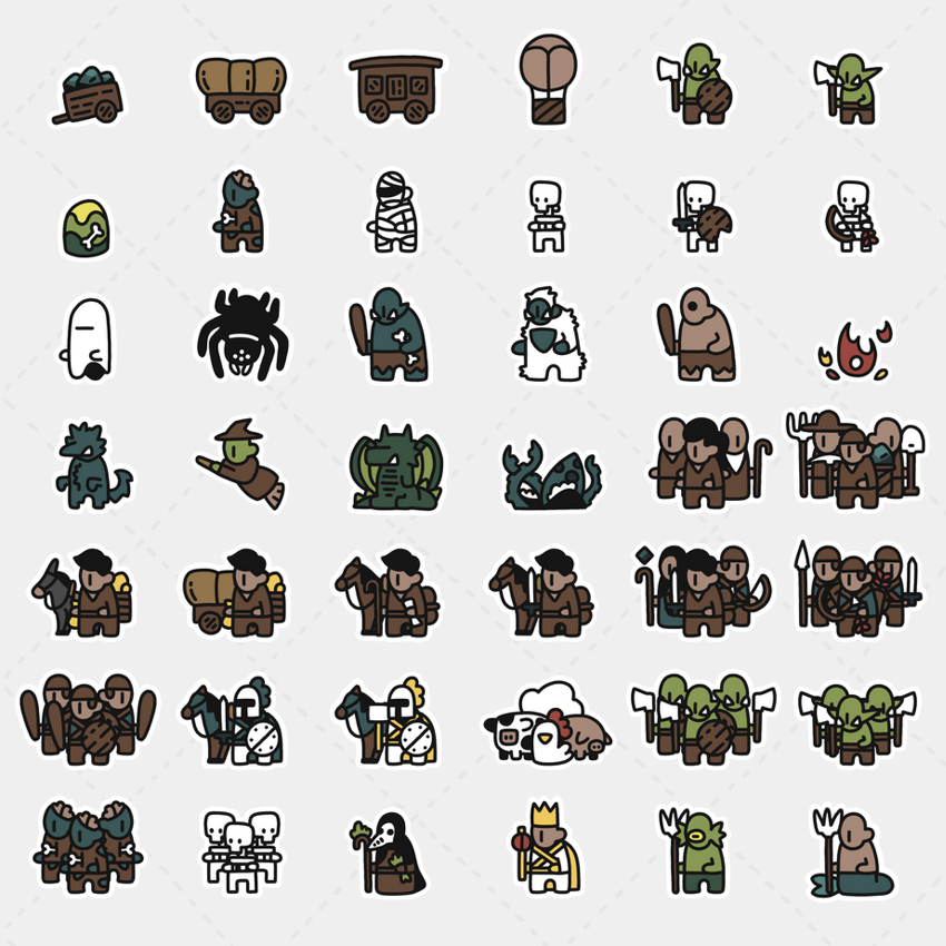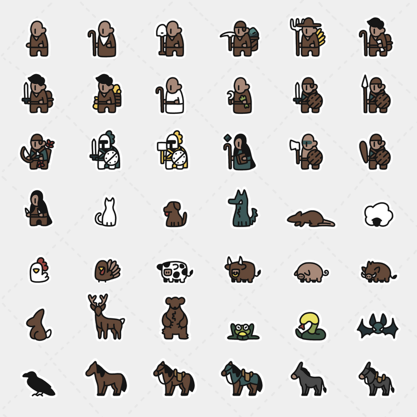 A pack full of figures and compositions, spanning villagers, workers, fighters, monsters, animals and vehicles, ready for your strategy video game or tabletop RPG. More…